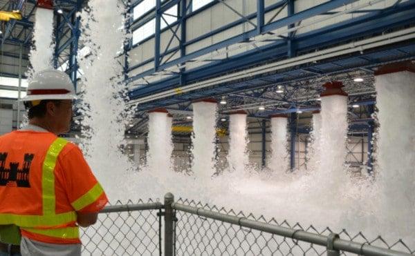 Aircraft hangars commonly have deluge systems, including foam versions. Image source: US Army Corps of Engineers