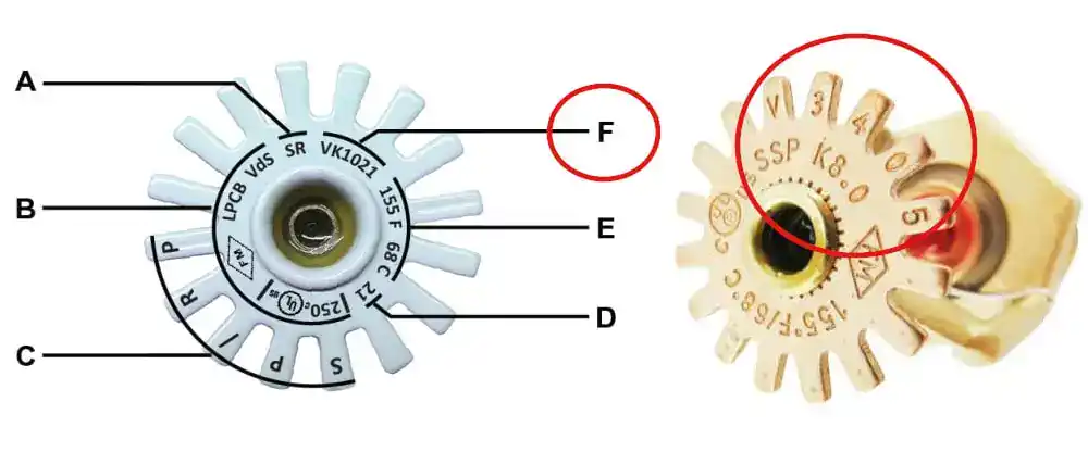 Look for a 4-to-7-digit sprinkler identification number (SIN) on the deflector that begins with the manufacturer letters R or RA, SS, TY, V, or VK. If you find that code, look to buy a sprinkler with the same SIN at the same activation temperature (also listed on the deflector).